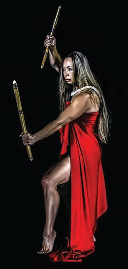This beautiful print is now available in four different sizes and three framing options, including just the print. Kumu Manu poses with the Palua 'O Newa adorned in red in this artful depiction of the ancient Hawaiian warrior tradition of Lua.